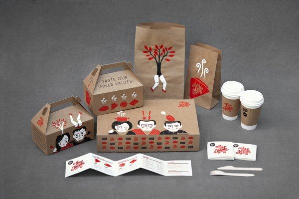 德國設計師Alexandra為快餐店The Inside設計的包裝。the inside主營各樣的餃子——煮的,炸的。the inside很明顯要讓人們關注包裝背后那些美味的食物,包裝很搞怪,設計了一些小人,他們的大腦里都是食物!