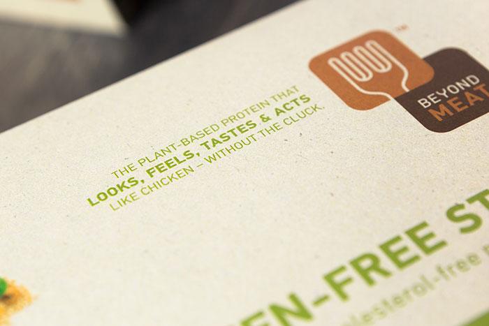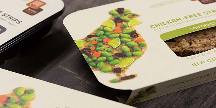 這個冷凍食品包裝設(shè)計形象許,除了展示凍肉的完美鮮亮的外觀之外,是完全可以取代動物蛋白的植物蛋白產(chǎn)品,這是該公司出現(xiàn)在貨架上的第一個產(chǎn)品。