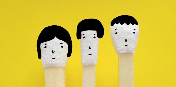 小木偶結合創意設計也會為老產品帶來新的生命力,這是Kumi Hirasaka 在1994年借用日本的傳統木娃娃造型設計的火柴包裝設計部分,后來將木偶的制作擴展到了小雞,小豬,小貓和其他動物類型上