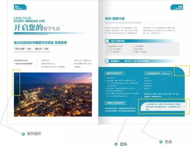 第一,版式布局。把信息先羅列上去,確保在閱讀性上是沒問題的,基本的版式布局好,樹干畫好了再去畫葉畫花。根是什么,就是這個項目需要表達的中心思想即設計要表達的意境。切記找一些不主流的所謂的創意版式。畫冊在設計上統一性與連續性是非常強的。第二,信息歸類和視線引導。把需要歸類的信息用色塊整合在一起,用點線去引導或者是區別標題與內文,增強信息的閱讀性,更加明了清晰。第三,強化對比和深化標題。主標題大小和顏色對比,配上英文深化對比。副標題和次標題也分別用圖形去統一規范。并添上相應的配圖和項目的主色。第四,進一步歸類:裝飾圖形或者色塊。以上最基本的畫冊排版。