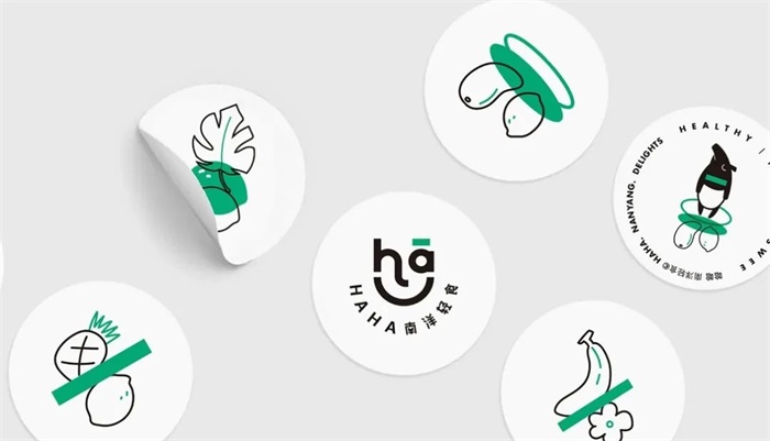 南洋輕食LOGO設(shè)計以字體線條為主,通過加粗和顏色搭配顯得清新簡單,色調(diào)上以白色和綠色為主,黑色線條勾勒出食材和IP的形象,綠色作為恰到好處的點綴,IP形象像借鑒了南洋特色生物馬來貘,乖巧又無措地站立著萌點十足。