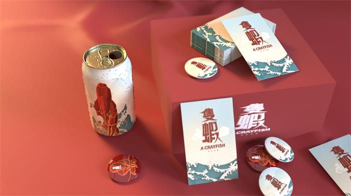 LOGO的設(shè)計模仿小龍蝦的形態(tài),選用硬朗卻又不是趣味的中國紅字體,帶著一種潮流復(fù)古感,棱角分明的細(xì)節(jié)處理如同小龍蝦的爪子堅硬突出。品牌的輔助元素運用了祥云紋,具有獨特代表性的中國文化符號寓意祥瑞之云氣,表達(dá)了吉祥、喜慶、幸福的愿望以及對生命的美好向往。祥云紋造型獨特,婉轉(zhuǎn)優(yōu)美,其美好吉祥的寓意宣傳了中國傳統(tǒng)文化,使得品牌更具生命力。采用了紅、藍(lán)、黃的標(biāo)準(zhǔn)色與輔助色,低飽和度的顏色具有傳統(tǒng)色感,仿佛取色于天空、河流、云彩。鮮艷明麗的色彩構(gòu)圖,紅與白相撞迸出火花形成鮮明的視覺效果。