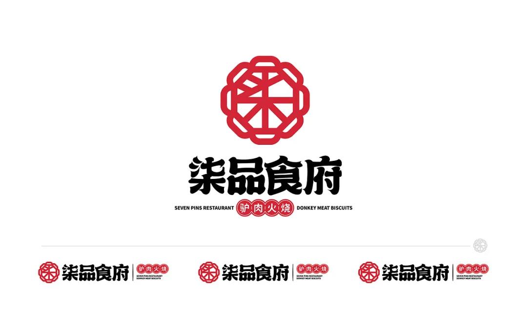 驢肉火燒是華北地區(qū)極為流行的傳統(tǒng)小吃,華北地區(qū)的大街小巷隨處可見驢肉火燒的店鋪,驢肉也蘊(yùn)含著極高的營(yíng)養(yǎng)價(jià)值。柒品食府的LOGO圖形提取了花窗的元素,結(jié)合名稱的首字“柒”抽象而成,是比較古典的感覺,注重打造品牌的符號(hào)文化。而文字的筆劃結(jié)束處的上揚(yáng)或下鉤,令字形呈現(xiàn)出比較輕俏的感覺,圖形與文字,更像是傳統(tǒng)與現(xiàn)代的撞擊。LOGO有著不同的組合樣式,橫版組合樣式重在突出符號(hào)和名稱,而豎版組合樣式則側(cè)重展現(xiàn)名稱和品類,圖形符號(hào)作為點(diǎn)綴,使LOGO的整體呈現(xiàn)更加和諧。