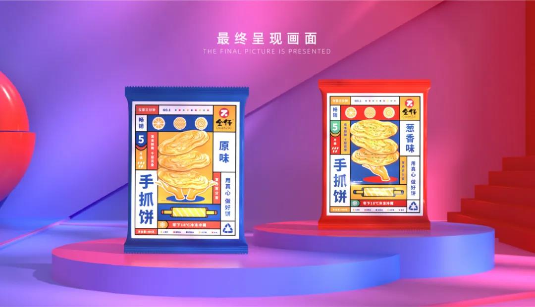 不只是在夜市才見得到的手抓餅包裝,畢竟現在的超市也能看到愈發多的,地方小吃被包裝成零食模樣,顏值上自然要更講究創意和突破了~