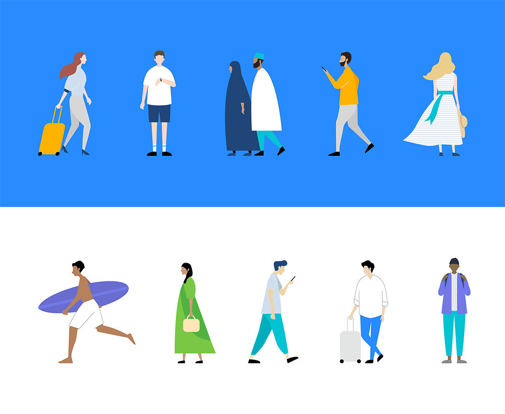 團(tuán)隊(duì)還設(shè)計(jì)了一系列插圖來表達(dá)Trip.com來自世界各地不同國家和地區(qū)、不同種族、說著不同語言的獨(dú)特個(gè)體。通過插圖,Trip.com可以傳達(dá)所有人的精彩故事。