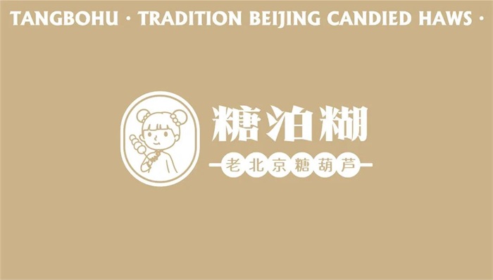 這個糖葫蘆品牌叫糖泊糊,是“唐伯虎”的諧音,品牌的設(shè)計字體,偏向老北京的商店排版字體,比較復(fù)古和體現(xiàn)北京。在品牌的配色上,采用了北京紅、少女粉、帝都金和陽光黃這四個配色去聯(lián)系品牌,結(jié)合了女性、北京、國潮、帝都和陽光的感覺。品牌塑造了小女孩吃糖葫蘆的主IP形象,小女孩扎著兩個丸子頭,劉海下是童稚的圓臉,服飾方面也比較貼近老北京小女孩的穿搭,看起來甜甜的。