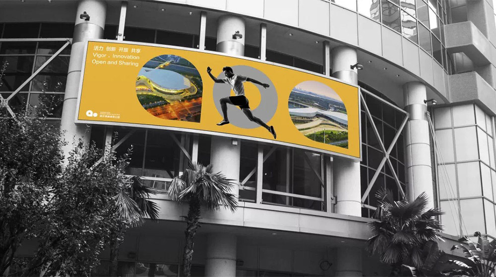 “ao”與青奧的“奧”音節(jié)相同,契合了發(fā)揚(yáng)青奧品牌效應(yīng)的理念,同時(shí)與青奧體育公園的建造背景相呼應(yīng)。加注音調(diào)后,也可以理解為感嘆詞“噢”,體現(xiàn)出場館獨(dú)具特色的形象氛圍,以及觀眾對(duì)場館的驚嘆感受。同時(shí),根據(jù)不同的場合和環(huán)境,對(duì)LOGO原造型的顏色和圖案進(jìn)行藝術(shù)處理,形成獨(dú)有特色的造型“語言”圖案,使之更加生動(dòng)。