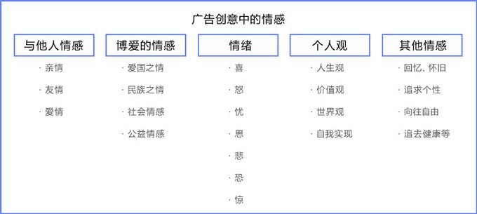 1. 廣告創意中的情感有哪些? 情感包括道德感和價值感,《心理學大辭典》中認為:“情感是人對客觀事物是否滿足自己的需要而產生的態度體驗”。所以廣告創意中的情感有與他人的情感、博愛的情感、情緒、其他情感及個人觀。