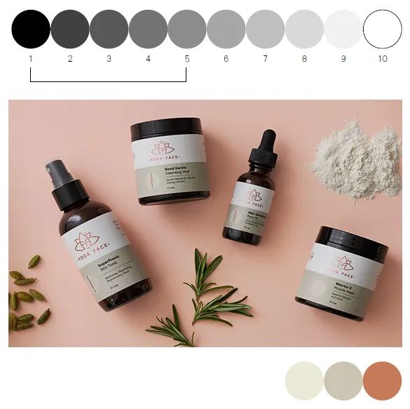 為了更好地理解飽和度對比,可以建立一個有10個等級的飽和度色標(biāo),表示在純色中加入不同比例的等量灰色。像明度對比的測量一樣,飽和度對比也可以根據(jù)色階差的大小分三種類型。