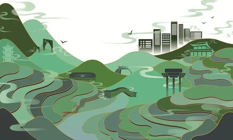 據官方釋義,LOGO圖形融合了定西城市特色的梯田、定西市博物館和王莽權衡雕塑、特色山脈元素。而這些LOGO圖形元素組成了“定”和“西”兩個字。LOGO除了代表健康,環保的綠色,還有紅色版本的呈現形式。另外還同時發布了一系列的主題插畫,其中以下這幅以綠色為主色調。畫面結合了梯田、山川河流以及王莽權衡雕等豐富的元素來呈現城市之美。