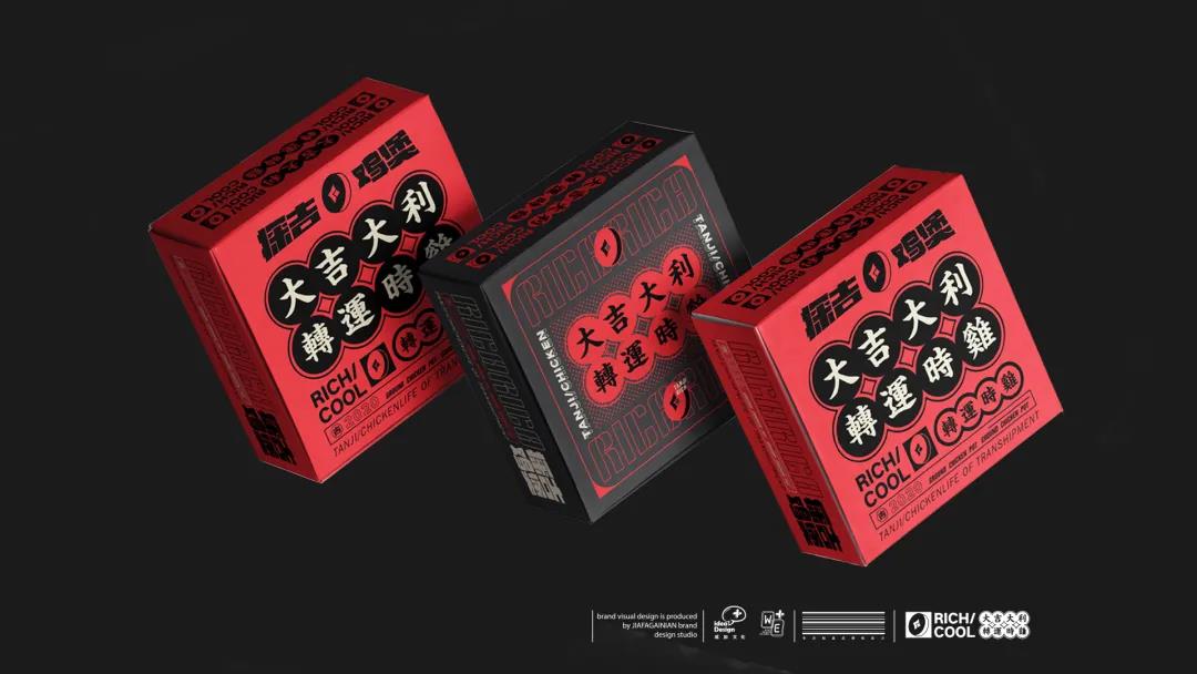 品牌的物料設(shè)計(jì)中,通過(guò)“大吉大利“”運(yùn)轉(zhuǎn)時(shí)雞“”暴富”等詞語(yǔ),將這些美好愿景傳遞給消費(fèi)者。