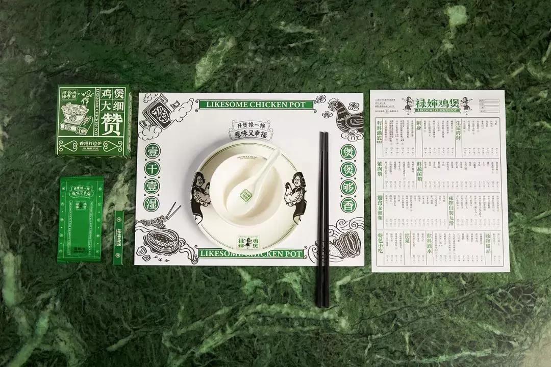 在整套視覺(jué)系統(tǒng)中,IP形象“祿嬸”成為L(zhǎng)OGO的一部分,抱著一只雞、身穿旗袍,是從人們的固有印象中提取的元素。