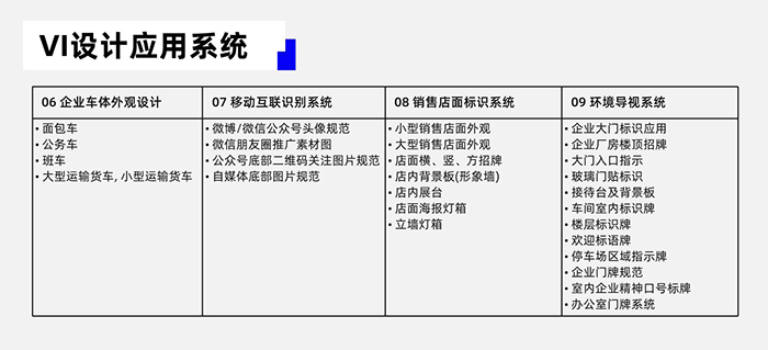 那么,完整的vi設計項目包含哪些內容呢?下面是煥識品牌多年實戰收集最完整的vi設計清單: