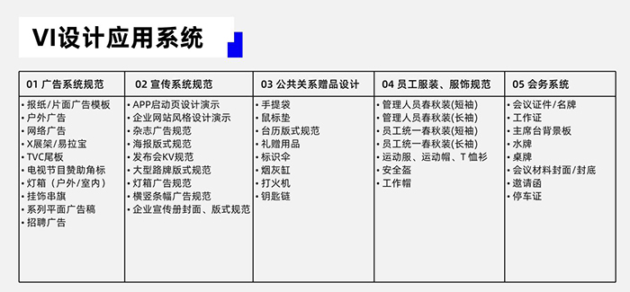 應用系統包含:辦公系統、廣告系統、數字媒體系統等,系統化設計可以幫助品牌統一規范化落地!